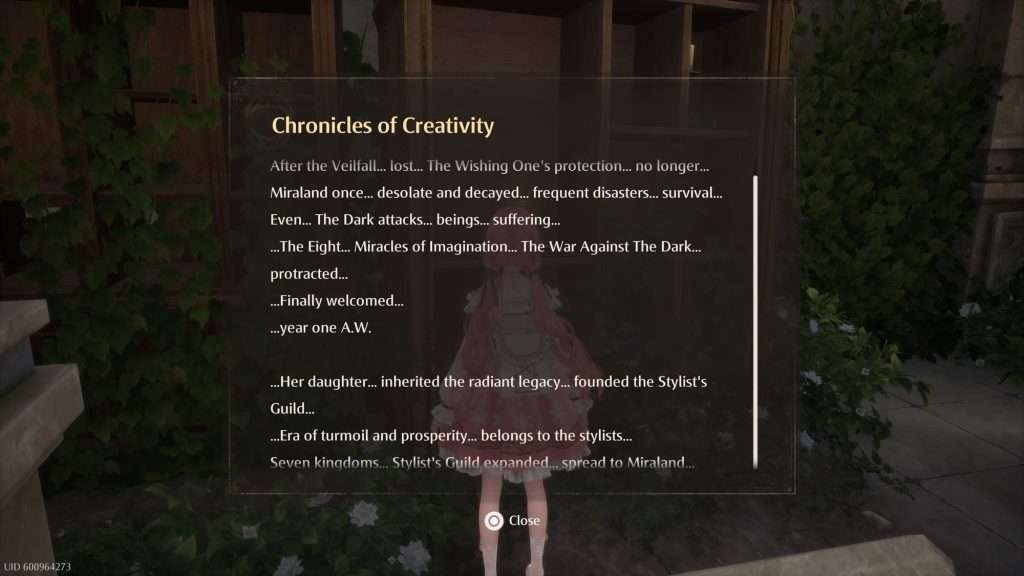While exploring the game delves into some of the background. Apparently a war happened? Darkness fell over the realm. Nikki has to gather resources, craft dresses, and expel the darkness. You can see that the state of ruin that Miraland is in comes in the way of finding out the full story.