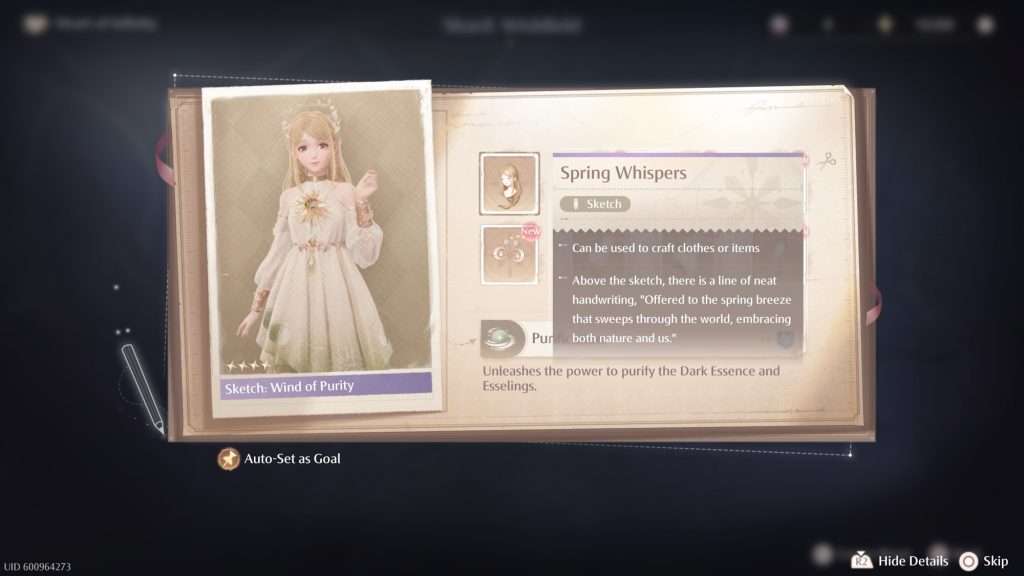 While exploring, you begin to learn about Whimstars which are collectibles that allow Nikki to obtain sketches for the dresses. The sketches are required to craft the dress. Think crafting recipes.